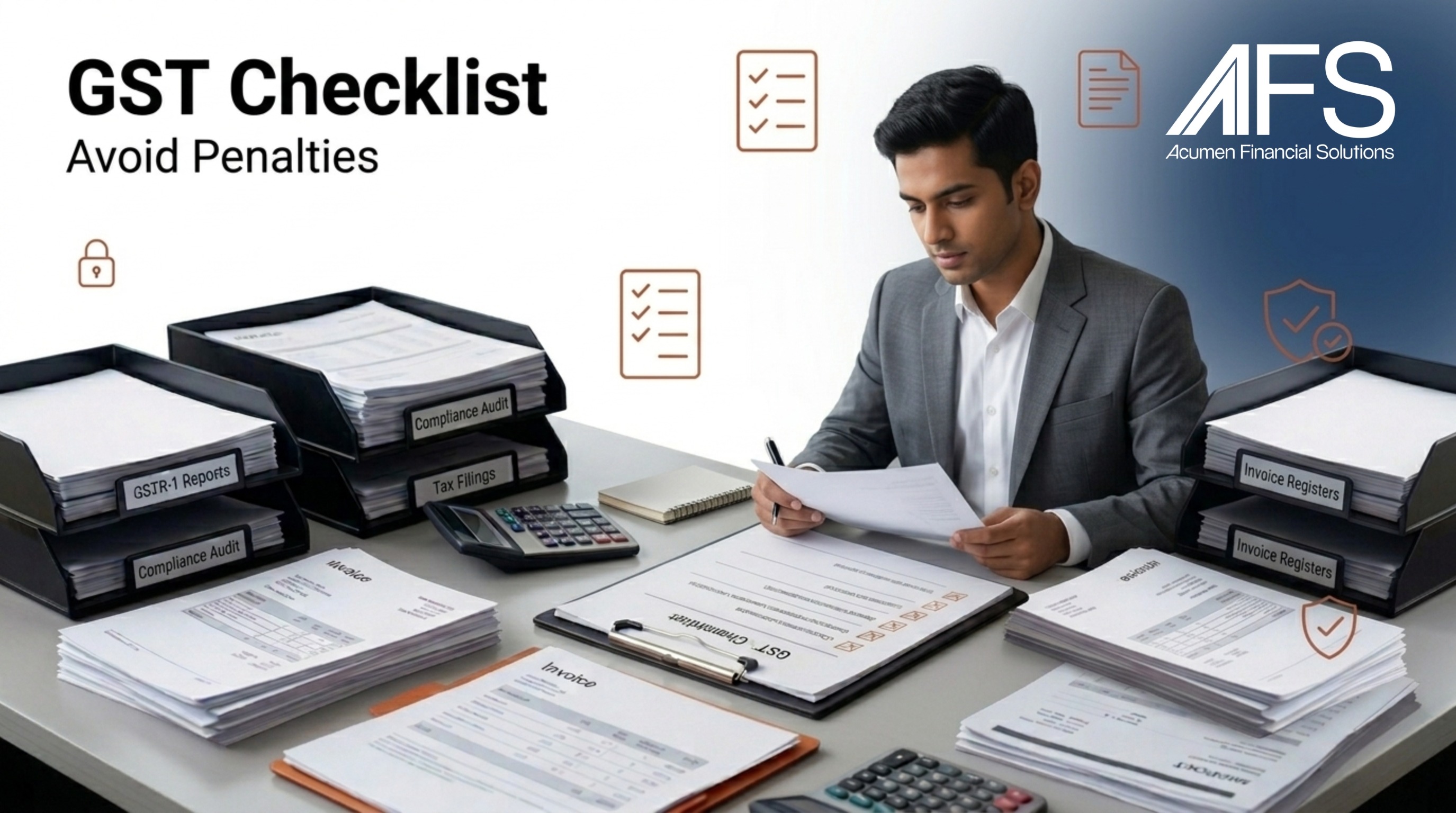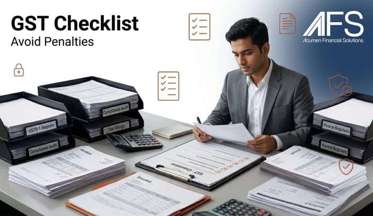 Below is a concise, expert-level GST compliance checklist followed by CAs and advisory firms like Acumen Financial Solutions: Acumen Financial Solutions | Expert Outsourced Accounting, GST, Tax & Financial Advisory - AFS | Acumen Financial Solutions